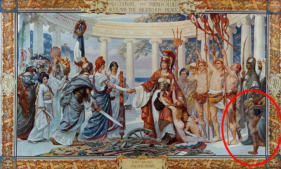 The pieces, completed between 1914 and 1921, include images of empire seen as problematic by campaigners, including a representation of Africa as a fruit-bearing little boy surrounded by white Anglo-Saxon adults.