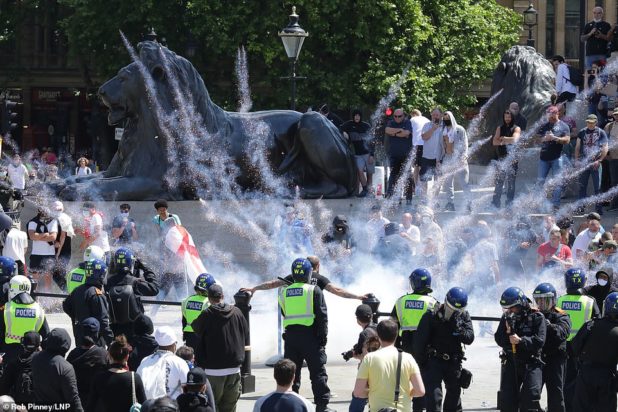 Police were fighting to keep control of London [Saturday] afternoon after a pro-statue rally spiralled into hooliganism and ran riot through Westminster.