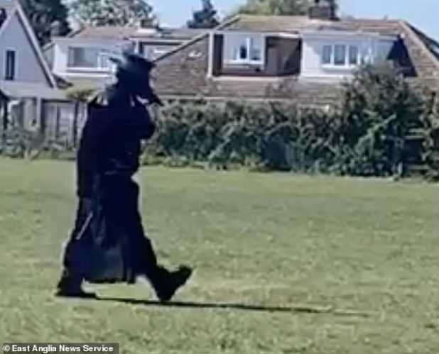 But spooked residents in Norfolk complained the mysterious figure was ‘disturbing’ and ‘terrifying’ for children, reminiscent of ‘bring out your dead’ criers who would have transported victims of the bubonic plague away from homes 300 years ago.
