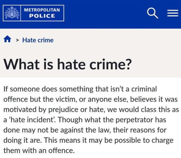 According to this definition (which has been removed, but it’s still how the UK police define “hate crime”), all of the “trivial” incidents above are either hate crimes or potential hate crimes. Yet the police regard them as “trivial” cases, leaving John Goy and Jane Gentile to scratch their heads in confusion.