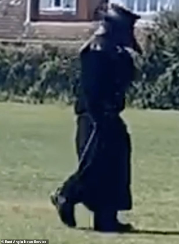 Jade Gosbell, who saw the walker, said: ‘It was like 20 degrees, he was wearing a full black suit, it just looked ridiculous.’