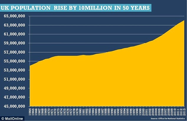 There are now more than 64million people living here – up by an astonishing five million in the last 12 years alone.