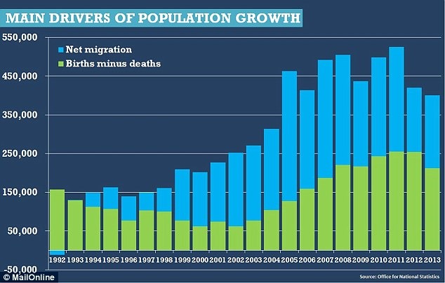 Every year, schools, the health service, roads and housing are having to cope with an extra 400,000 people, equivalent to a new city the size of Bristol.