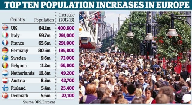 Shocking population figures have just been released for Britain which show that it is growing twice as fast as the rest of Europe.
