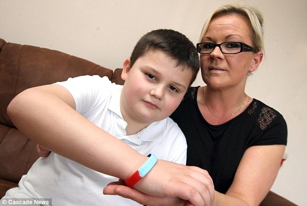 Tracy Tew was shocked when her son Charlie was put on a report card at Maldon Primary School in Essex after he refused to take off the charity rubber bracelet sold to honour injured soldiers.