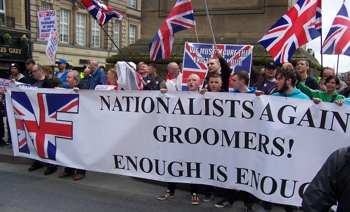 Unlike the rest of the political parties, especially the so-called ‘socialist’ left, the National Front refuses to stick its head in the sand over any attacks on the British people and we are determined that the British people are told the TRUTH regarding the organised nationwide rape and abuse of underage White girls. A public demonstration was called by North East National Front organiser Simon Biggs for Saturday, 10th May 2014 calling for tougher sentences for the grooming gangs and an end to the media blackout.