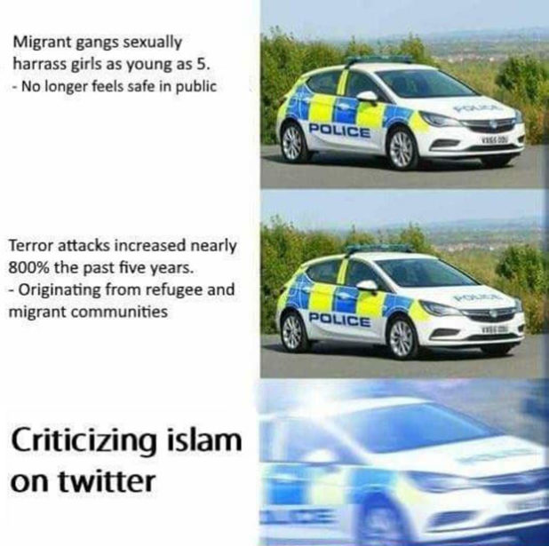 The British police are single-pointedly dedicated to stretching the collective anus of British people as wide as possible to accommodate the maximum number of Islamic cocks. These people are steeped so high in treason, in fact, that it wouldn’t surprise me if that was their official job description.