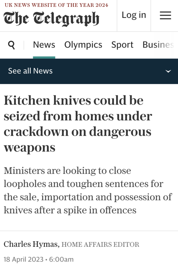 Just a reminder: the UK did a crackdown on kitchen knives.