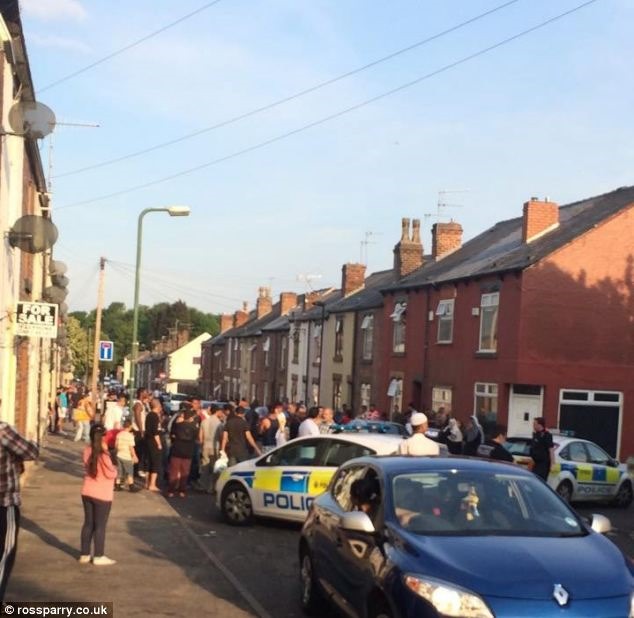 A 17-year-old boy suffered a suspected broken arm in the disturbance, which was watched by dozens of concerned residents who poured into the street to watch the clash unfold.