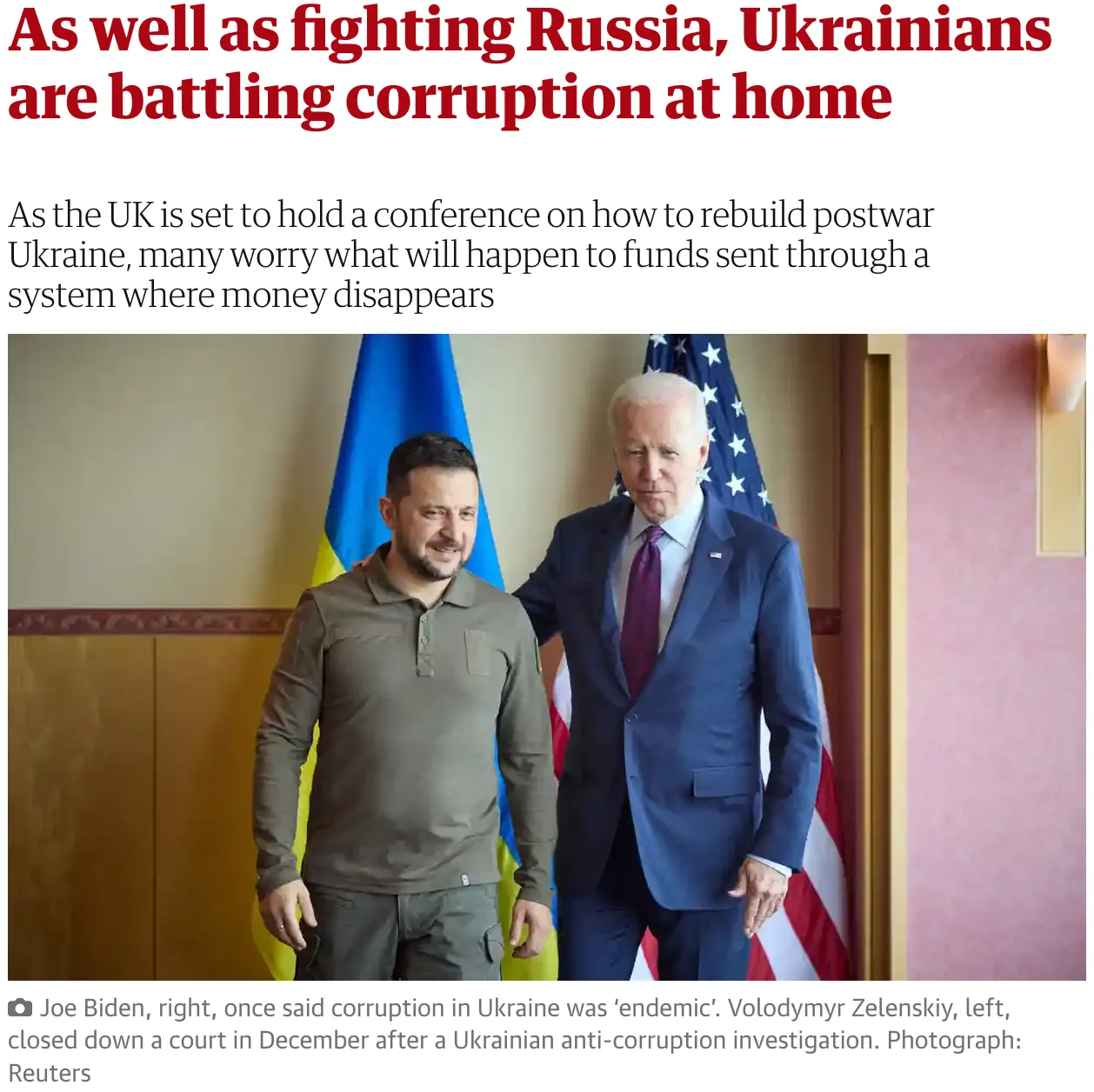 So, alongside any reconstruction conference is a discussion, of varying degrees of frankness, about the conditions the west can set to help Ukraine kick the corruption habit. This is not of passing interest to a cadre of US officials who have spent considerable time trying to reform Ukraine, including Joe Biden. He told Brookings in 2015: “The corruption is so endemic and so deep and so consequential, it’s really, really, really, really hard to get it out of the system.”