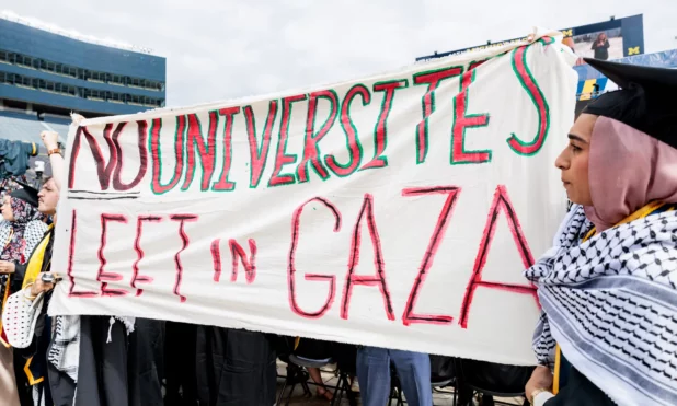 According to the Associated Press, one banner read: “No universities left in Gaza.”