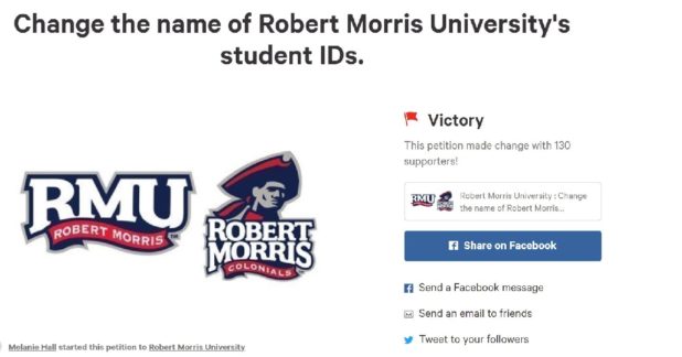 “We would like to rename our Freedom Cards to something that is not insensitive,” reads the petition. “If Robert Morris University is the welcoming place that the other 76 percent of students know and love; we ask that these changes be made so that minority students can also feel that same pride in being a Colonial.”