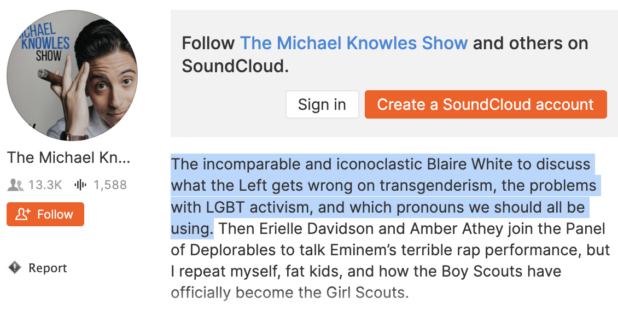 The Daily Wire’s gay fake Catholic shabbos Michael Knowles was buddying up with “right-wing tranny” Blaire White all the way back in 2017.