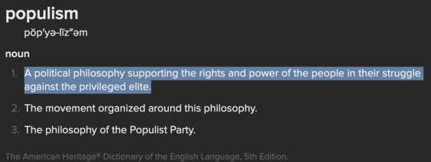 Unlike “democracy,” populism actually has a definition.