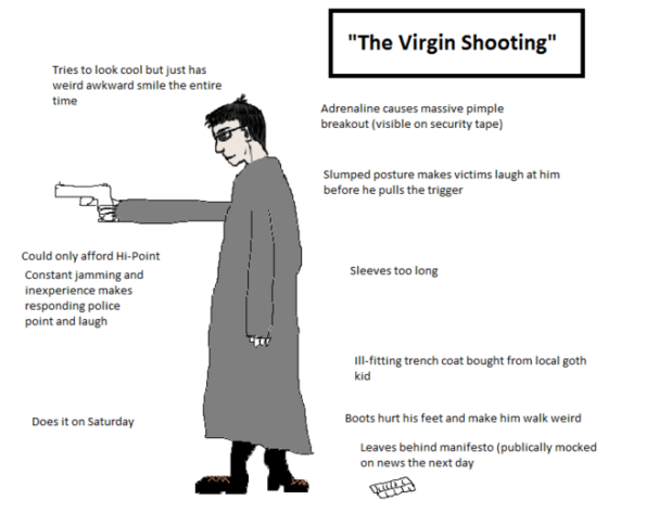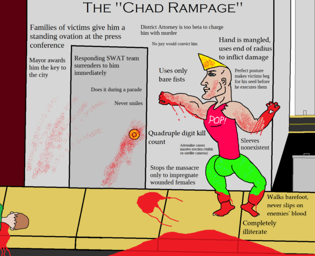 According to the Dallas Morning News, one of the many incel memes Clyde shared included one he referring to “virgin shooting” vs. a “Chad rampage” — yet another derivative of the ‘Virgin Walk’ meme featured in the Joint Base Andrews brief.