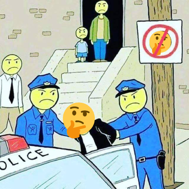 Imagine if Big Brother wasn’t an intimidating looking normal hetero White guy, but just a big smiley emoji, staring at you and arresting you, following your every move.
