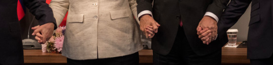 The fat one in the beige blazer is Merkel. She really doesn’t want to be holding hands with the guy to her right lol.