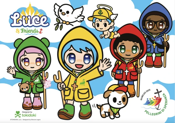 Luce and her friends were designed by tokidoki co-founder Simone Legno. Luce is joined by her dog Santino, alongside her friends Fe, Xin, and Sky. With a design reminiscent of Sanrio characters, Luce and friends wear colorful raincoats and boots to travel on their holy pilgrimage. Luce and her friends have unique markings in their eyes which Jubilee chief organizer Archbishop Rino Fisichella describes as “a symbol of the hope of the heart”.