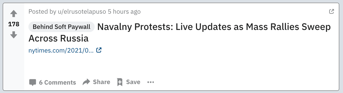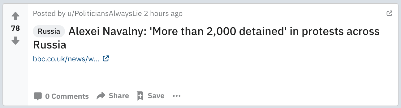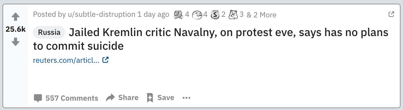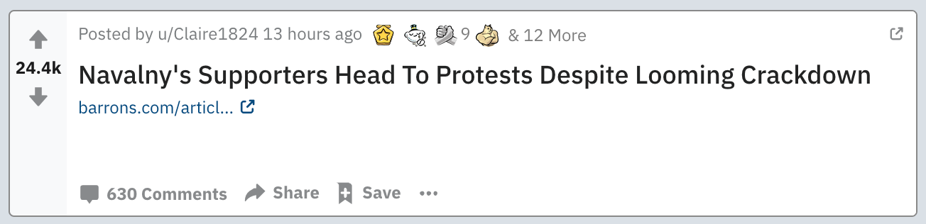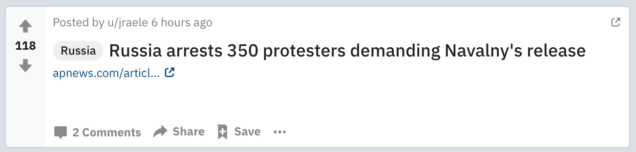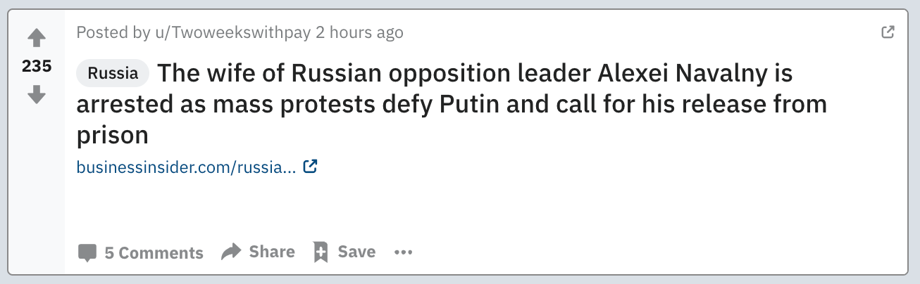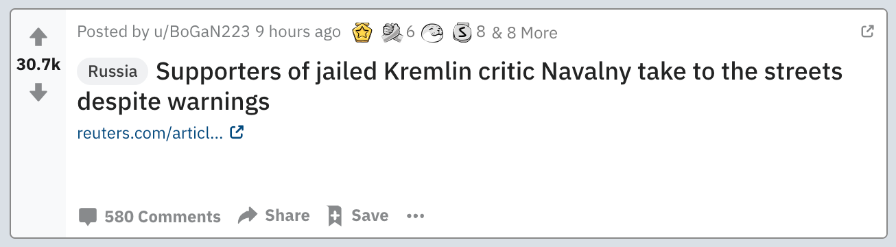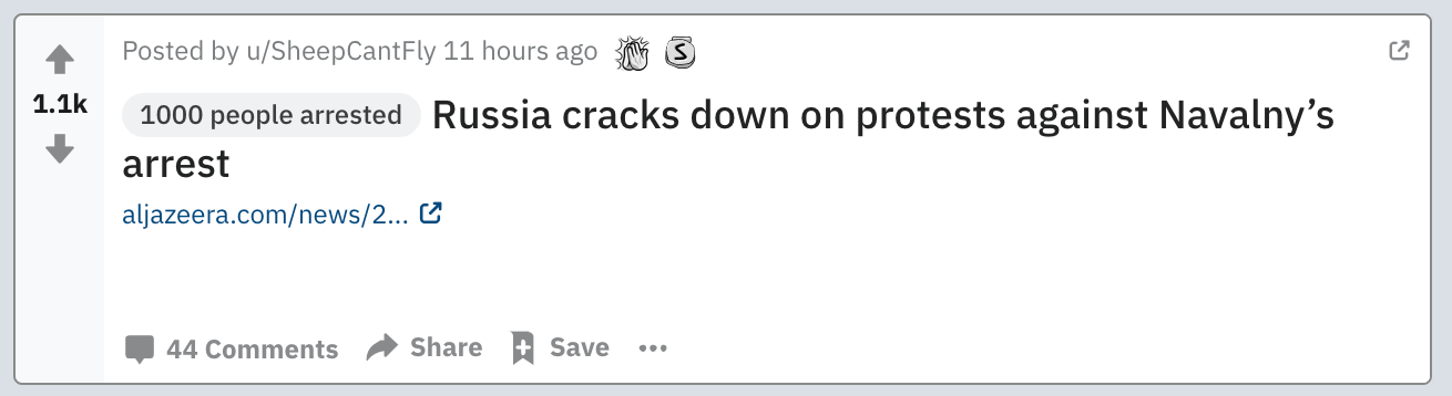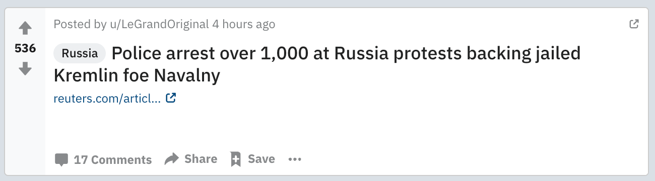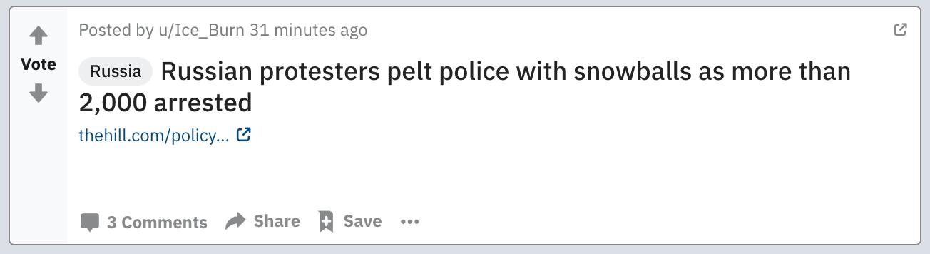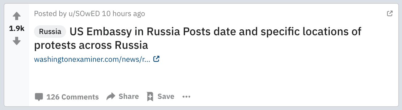 If 85% of articles on the front of CNN or New York Times were about Russian “protests,” people would possibly be confused. But on reddit, it is perfectly acceptable, and people think that is is simply the people voicing their opinion, through their upvote system.
