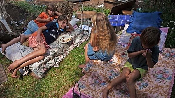 The community is keeping its spirits up, however. The very next day they were amassed chanting wonderful songs about their brave struggle against apartheid: