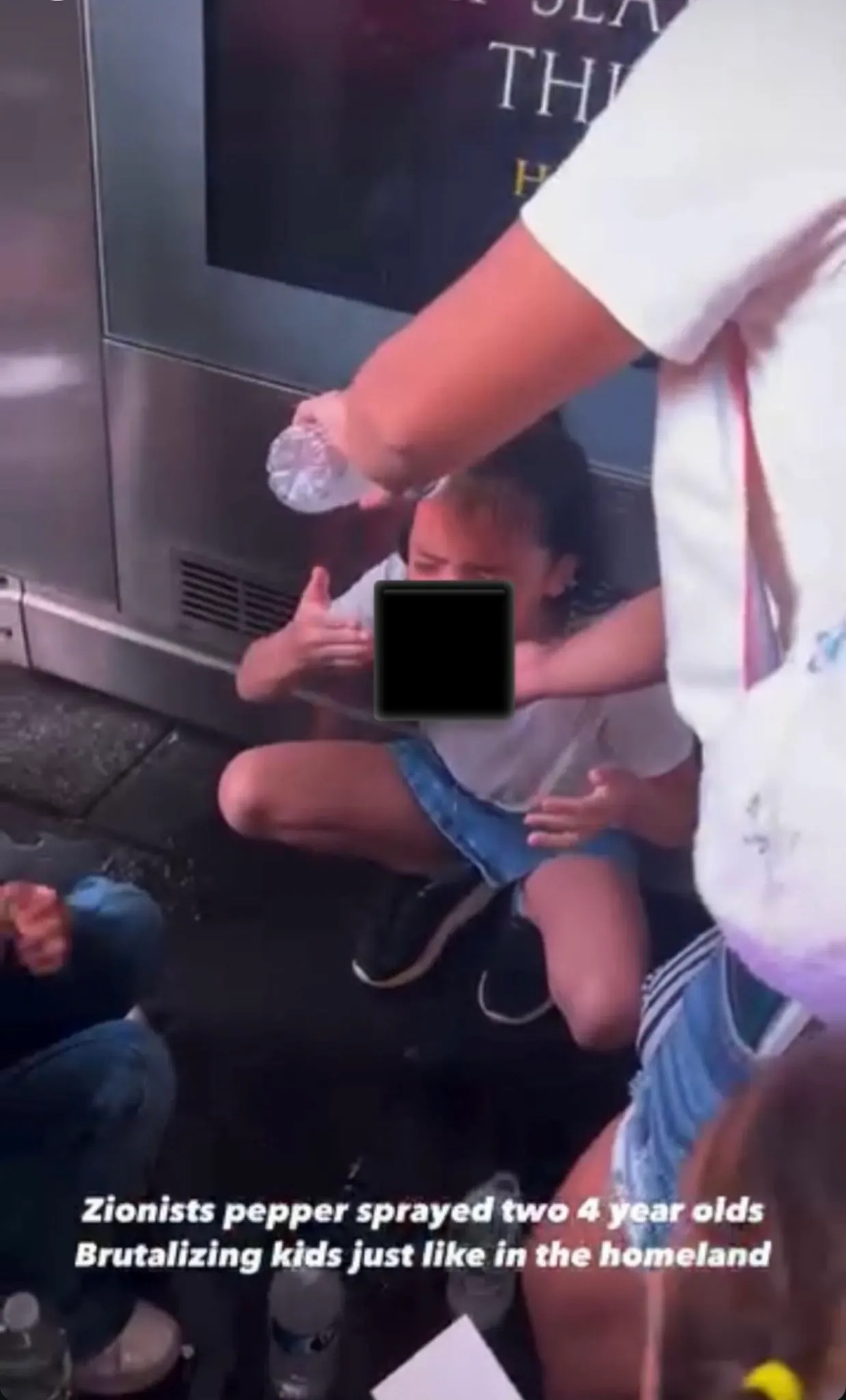Now she’s pepper spraying protesters in Times Square, NYC including children.