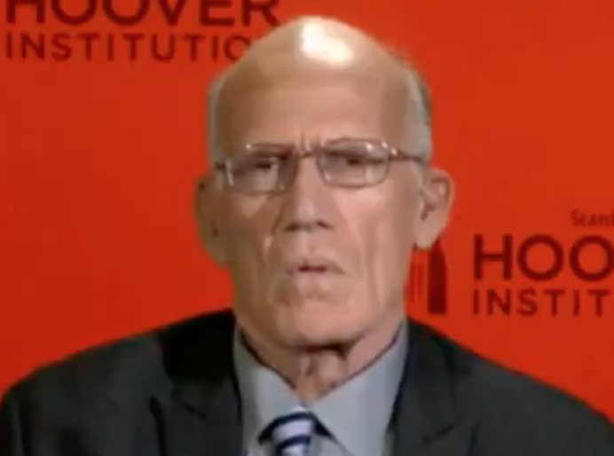 But then, at the end of the monologue, Tucker moved flawlessly into an interview with Victor Davis Hanson. He left off where his genius writers left him with “what’s the point of this I wonder?” and passed it to Victor triple names.