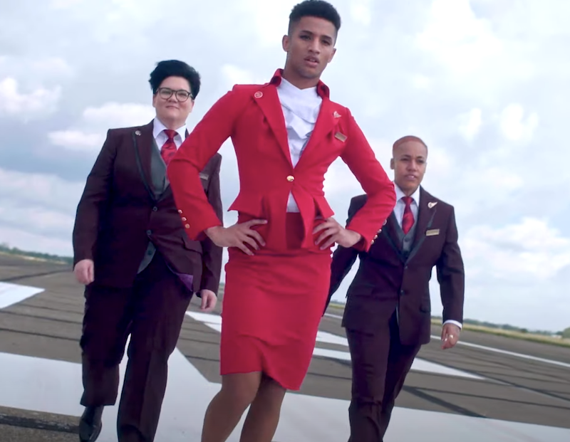 According to the airline’s press release, personnel are now free to choose any company-approved uniform, “no matter their gender, gender identity or gender expression.” The uniforms have been created for Virgin by British designer Dame Vivienne Westwood.
