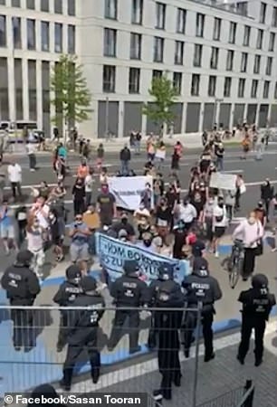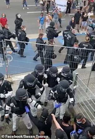 Footage which circulated on social media showed some of the protesters throwing a crowd control barrier at police during the scuffle.