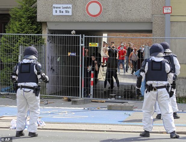 According to regional broadcaster NDR, around 200 of the 700 tower block residents had tried to break through the barrier during Saturday’s clashes.