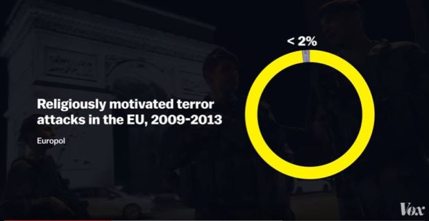 Vox claimed that only 2 percent of terror attacks in the European Union have been religiously motivated. 2 percent!