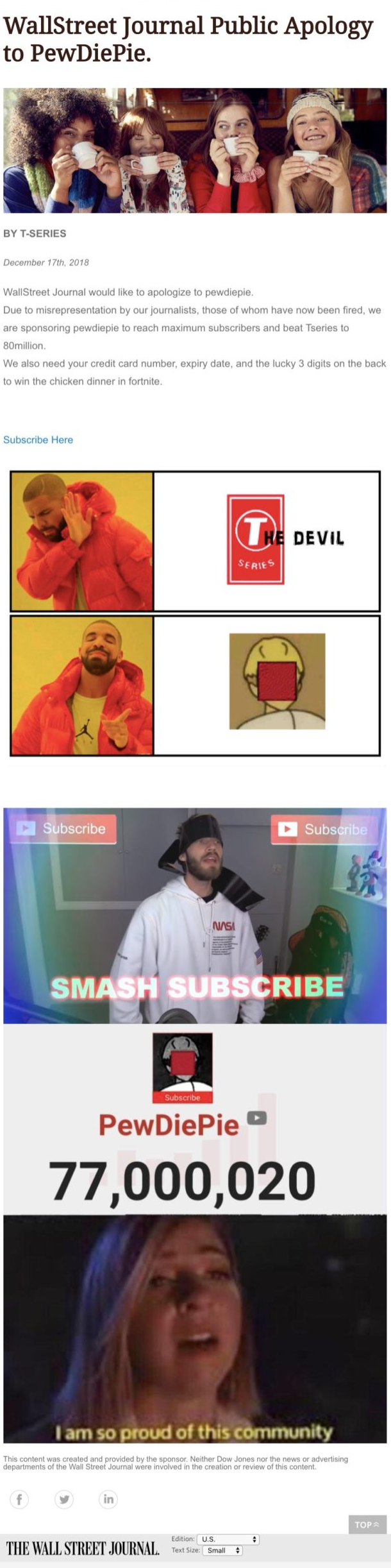 Someone has to have had access to the WSJ site to post this endorsement, so that means that Pewds has an ally inside of enemy lines.