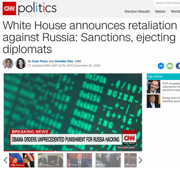 In a recent story about President Obama proposing sanctions against Russia for its roll in cyberattacks targeting the United States, CNN grabbed a screenshot of the hacking mini-game from the extremely popular RPG Fallout 4. First spotted by Reddit, the screenshot shows the menacing neon green letters that gamers will instantly recognize as being from the game.