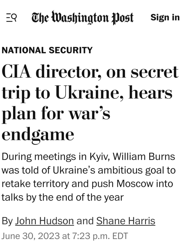 On Friday, the Washington Post gave a relatively official announcement that CIA Director William Burns flew to “Keev” to talk about a negotiated surrender to Russia. The Post decided to “bury the lede,” instead running the headline “CIA director, on secret trip to Ukraine, hears plan for war’s endgame.”