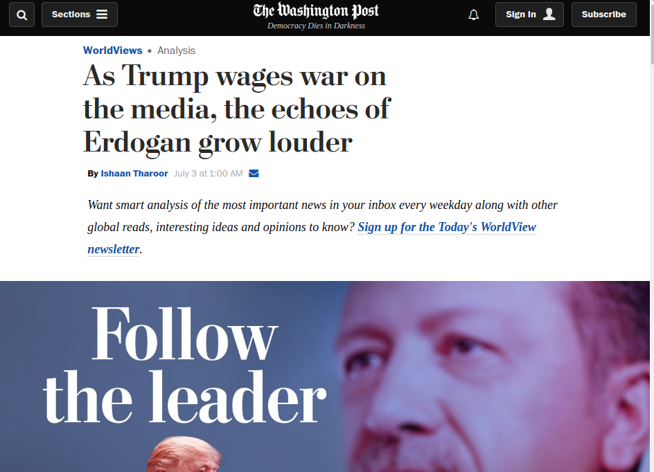 The stakes in Turkey are, of course, profoundly greater. Turkish President Recep Tayyip Erdogan withstood a violent coup attempt a year ago, which prompted his government to embark on a vast purge of state institutions and civil society. More than 100 journalists have been thrown into prison or forced into exile. Dozens of media outlets have been closed or taken over by state authorities. Newspapers that were once titans of the establishment have seen their editors criminalized and offices raided.