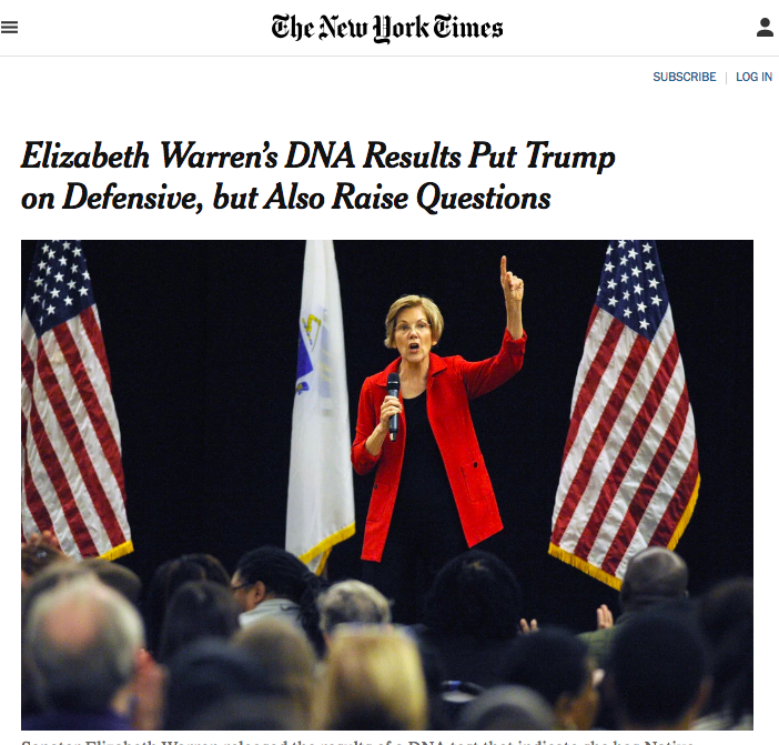 Ms. Warren’s elaborate attempt to neutralize Mr. Trump’s attacks represented the surest sign yet that she intends to run for president in 2020. Not only did the Massachusetts senator release the DNA results, but she created a fact-check website that details her Native American ancestry and her Oklahoma roots. The site also includes documents that Ms. Warren says make clear her heritage “had no role whatsoever” in her advancement during her academic rise as a Harvard law professor — as some Republicans have asserted.