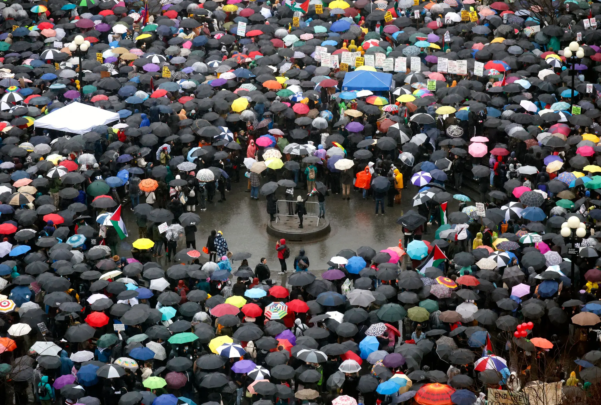“Our enemy is greed, and our enemy is silence,” the 77-year-old actress told the hundreds of protestors who braved the rain and the wind for the Millions March for Palestine, according to a video shared by independent journalist Katie Smith.