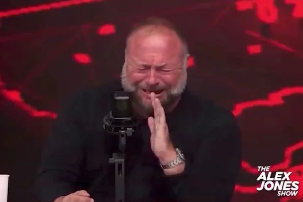 In the last 15 minutes of his broadcast, Jones — who faces ruin for spreading the disturbing, blatantly false conspiracy that the 2012 Sandy Hook Elementary School shooting was a hoax — sobbed repeatedly as he alleged the “Deep State” was trying to ruin him.