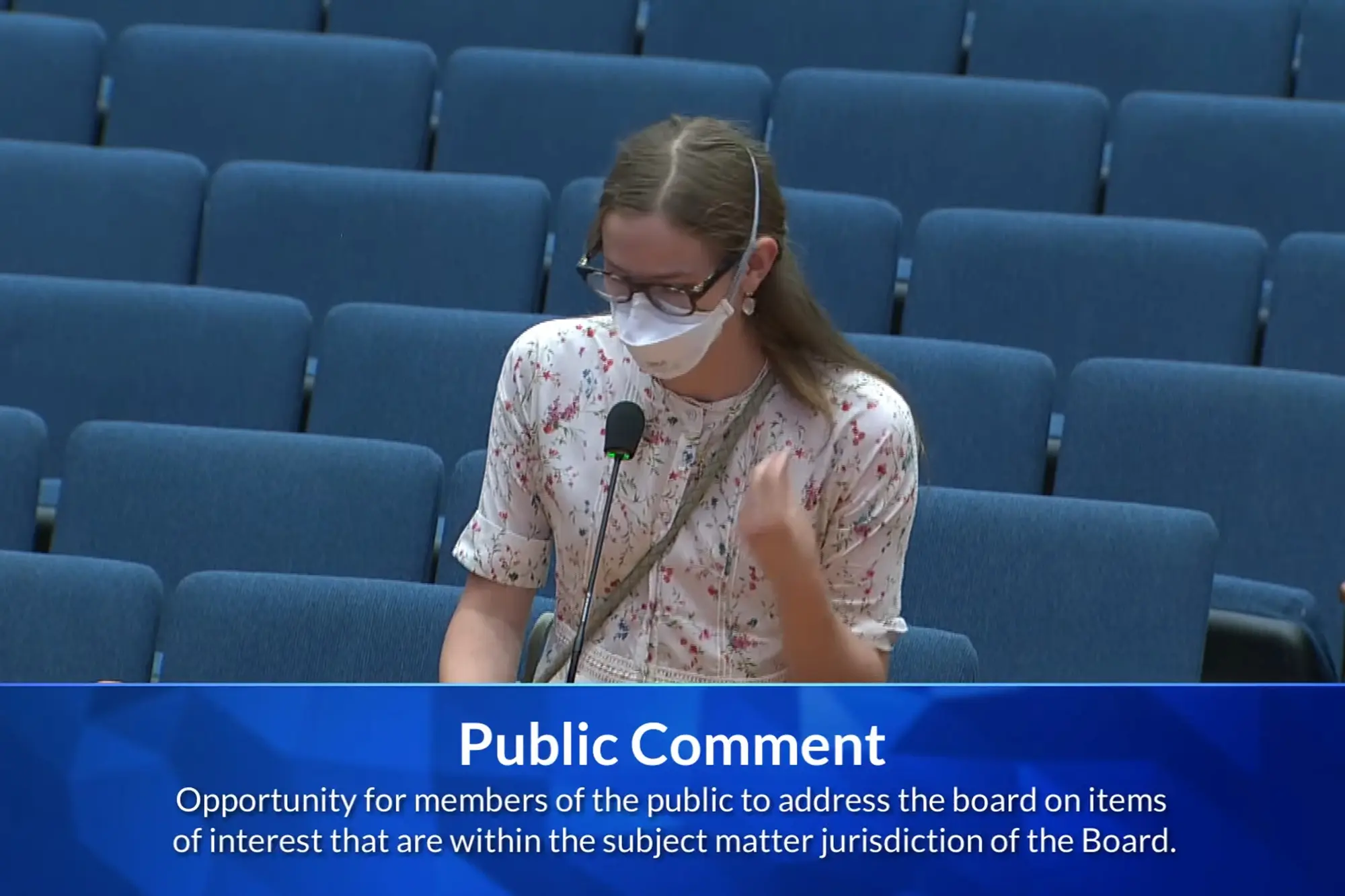 During public comments, a section when residents have a chance to ask questions and advocate for a cause, Violet introduced herself before urging the board for the mandate.