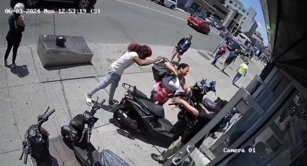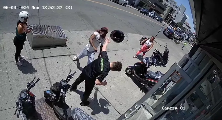 The melee began just before 1 p.m. Monday when the 35-year-old man flew into a rage outside the Fly E-Bike shop on 42nd Street near Broadway in Astoria, authorities said.