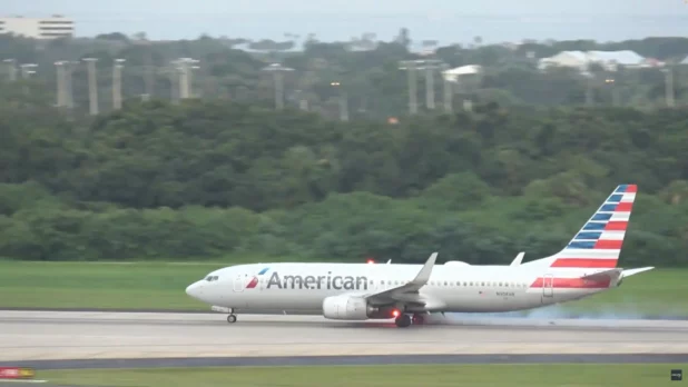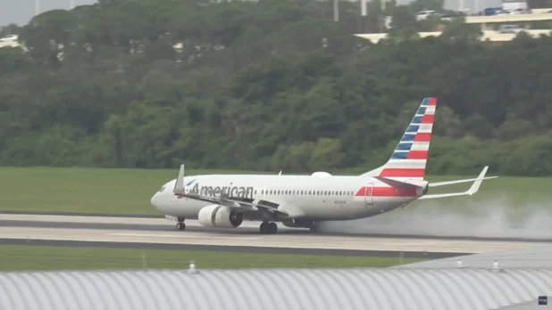 An American Airlines Boeing 737 flight was forced to abort after one of its wheels began to smoke — and exploded — just as the plane was about to take off from a Florida airport Wednesday.