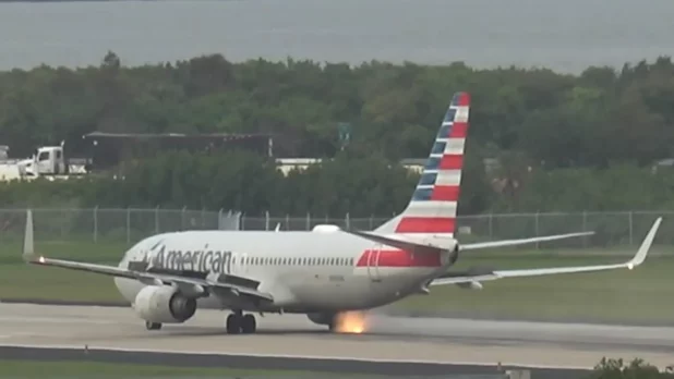 Footage posted on YouTube by plane spotter Captain Steven Markovich shows the American Airlines aircraft gaining speed on the runway at Tampa International Airport when its right tire suddenly begins to smoke, eventually bursting into flames.