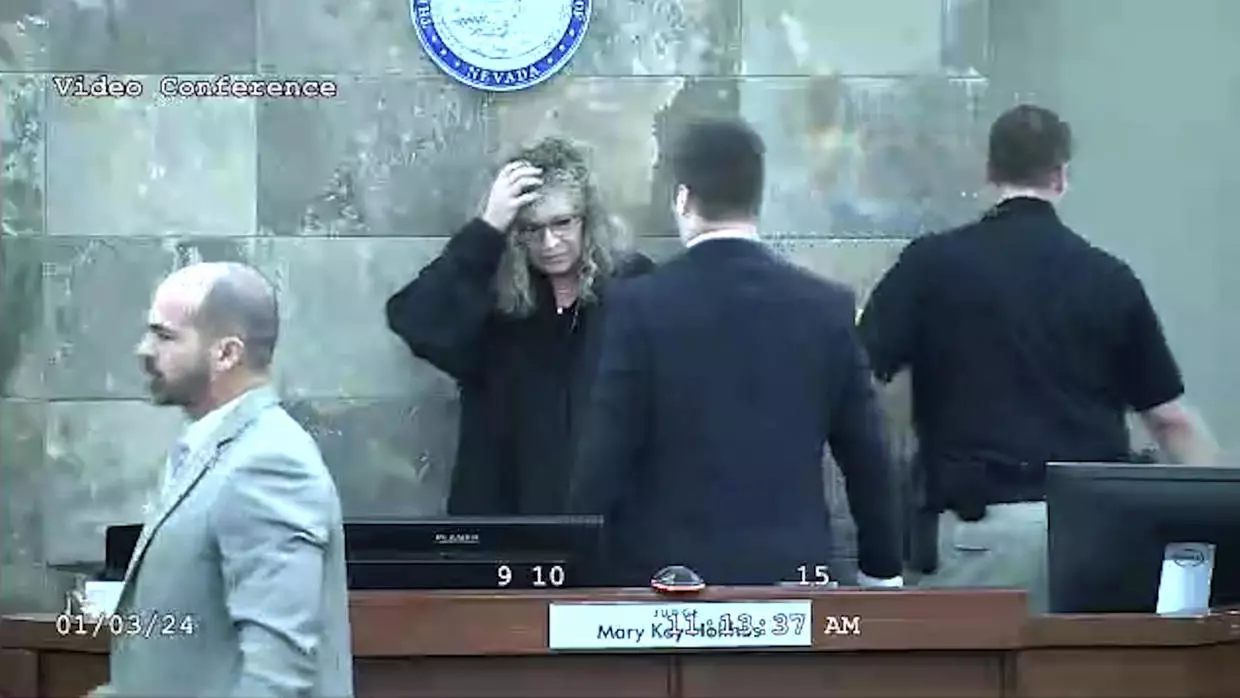 He was arrested and jailed at the Clark county detention centre, where records showed he faces several new felony charges, including battery on a protected person, referring to the judge and court officers.