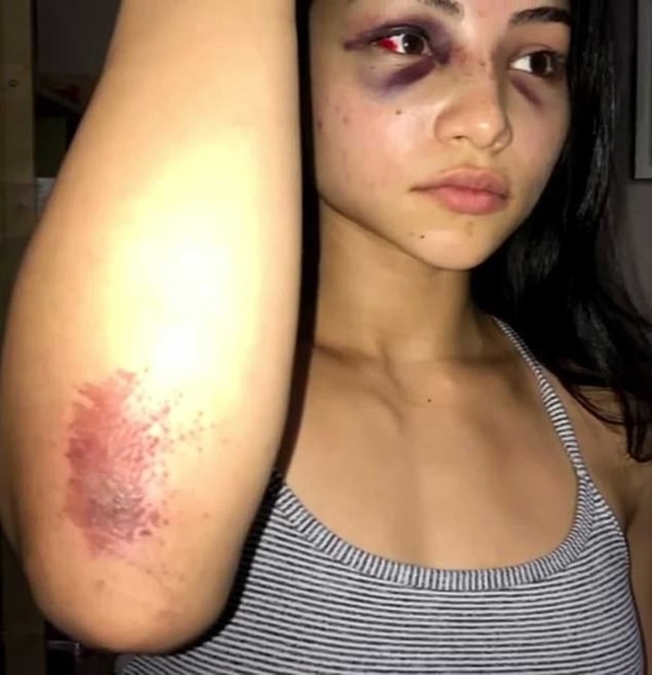 The whore, however, high on her own supply of female omnipotence delusion, went up to him from the back and punched him in the face as he turns around to face her.