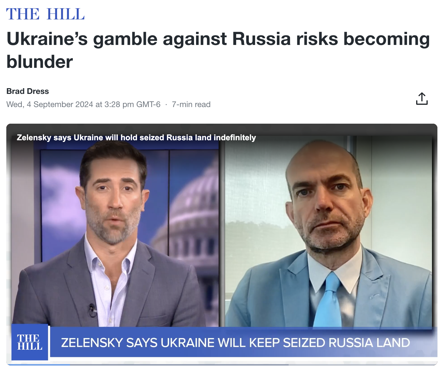 For a few weeks, it was that the Kursk invasion was part of a “bargaining chip” plan – that they would go to the negotiation table with some Russian territory in their control so Russia would make a better deal.