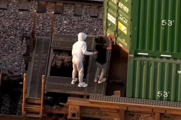 Officials said the railway is no stranger to these types of freight cargo thefts – but rarely, if ever, are they caught live on television.