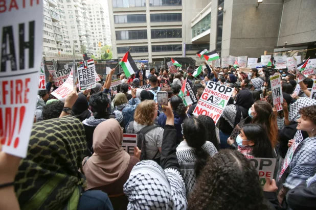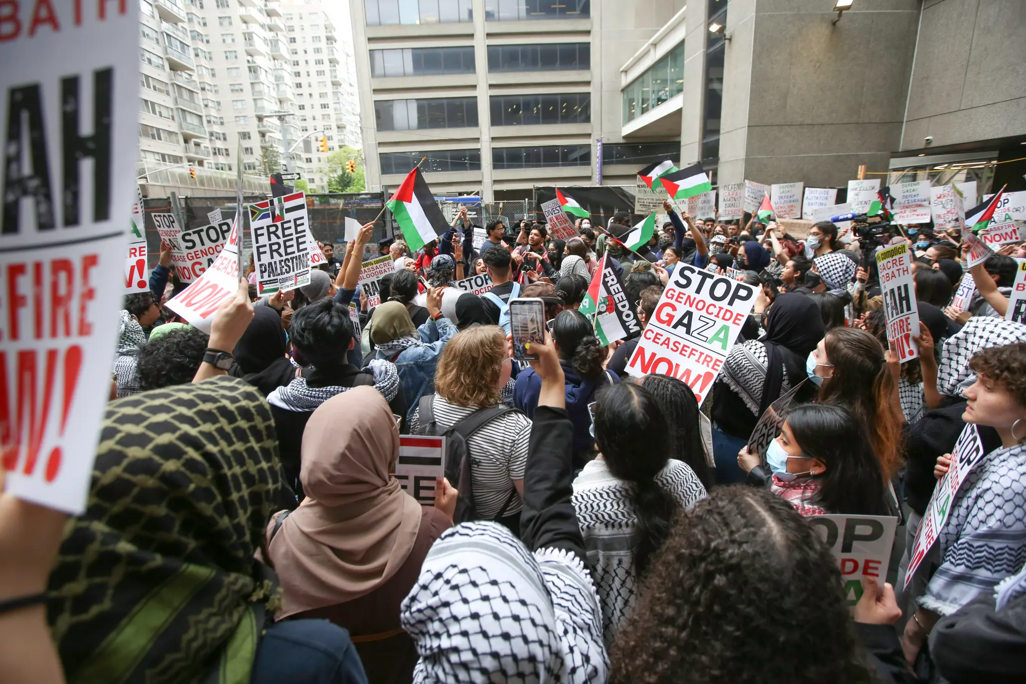It appears that the Jew tried to recover his Star of David hat thingie, and his swift and violent maneuver was interpreted as an attack by the mob of pro-Palestine protesters.