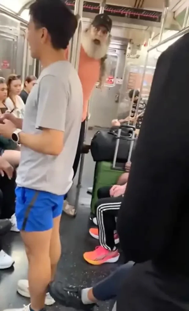 The harrowing encounter, uploaded by the Combat Antisemitism Movement (CAM) group on Tuesday, shows the bearded man wearing a black cap and orange long-sleeve shirt yelling across the subway car at the student during a trip on the 1 train near 96th Street.