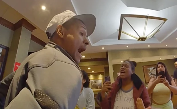 Police busted two people during the Tuesday afternoon melee at a local Ramada Inn — but not before they were surrounded and berated in Spanish by an unruly migrant mob, the footage shows.