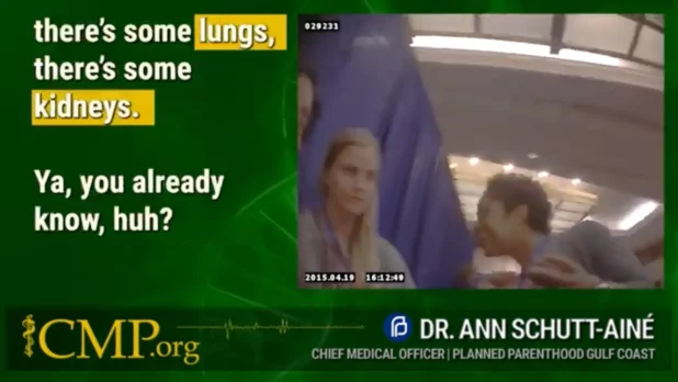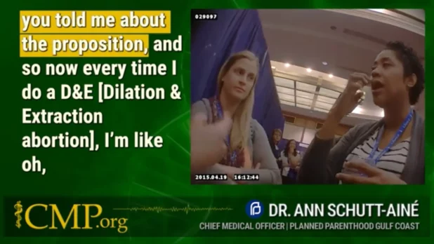 âYou told me about the proposition, and so now every time I do a D&E [dilation and evacuation abortion], Iâm like, âOh, thereâs some lungs, thereâs some kidneys,’â Schutt-AinĂ© is seen telling Nguyen in the video.