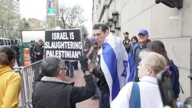 Other footage from Wednesday’s protest shows NYPD officers stepping in between tense confrontations of pro-Israel and pro-Palestinian demonstrators.